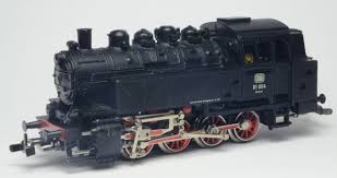 | 3104 | Tender-lokomotive | Tenderlokomotive * Modell der Baureihe 89° der Deutschen Bundesbahn * 3-Achsig * Achsfolge C * 1 Achse angetrieben * Kupplungshaken an beiden Enden * Länge über Puffer 10,8 cm * | 1980 | ||