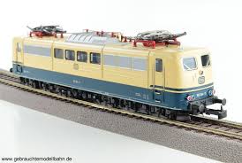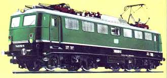 | 3642 | E-Lok 111 | Elektrische Schnellzuglokomotive Modell der Baureihe 111 der Deutschen Bundesbahn * 4-Achsig * Achsfolge BoBo * 2 Achsen angetrieben * 4 Haftreifen * Fernsteuerung für Vor- und Rückwärtsfahrt * Beleuchtetes Dreilicht-Spitzensignal * Umschalthebel zum wahlweisen Betrieb für Ober- und Unterleitung ** Kunststoffgehäuse Ozeanblau/beige * Eingesetze Fenster mit plastischem Rahmen * 2 federnde Dachstromabnehmer * Untergestell aus Zinkdruckguß * An beiden Enden automatische Kupplung mit Vorentkupplung (Relex) * Länge über Puffer 19,1 cm mit Digitaldecoder | 1985 | ||
